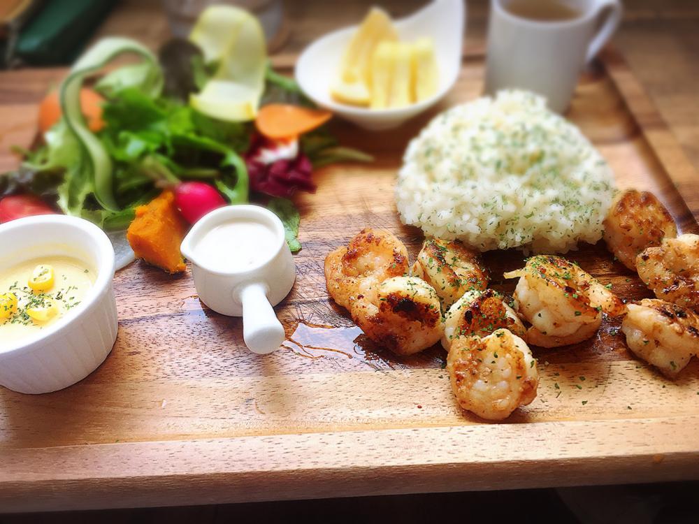 ガーリックシュリンプにしました、ドレッシングも数種類から選べて手作り感のあり美味しかったです!お米は今話題のキアヌでした。