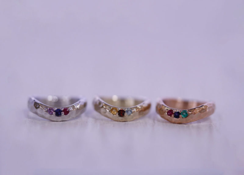 つけている所もお写真に撮りたいという方にもと思い、まずベビーリング本体のみを妊娠中にご注文いただきお子様の誕生日やお名前が確定した後に表面の誕生石や刻印がしていただけるようにいたしました。