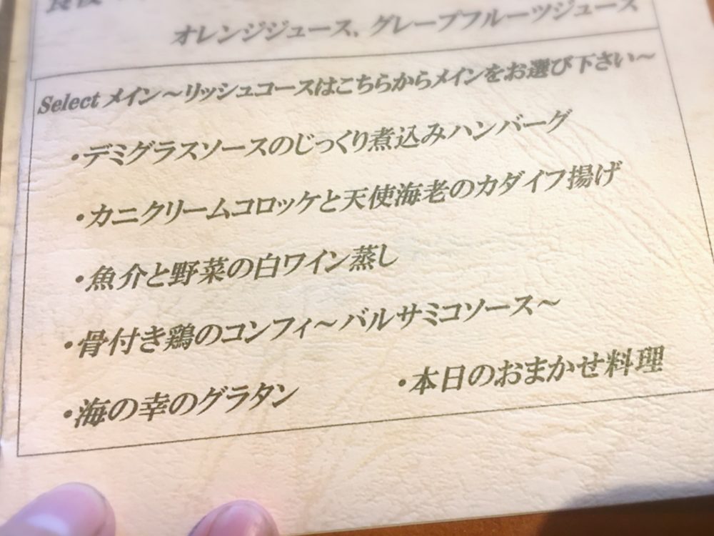 メインはのこのかから選びます、どれも美味しそう♪