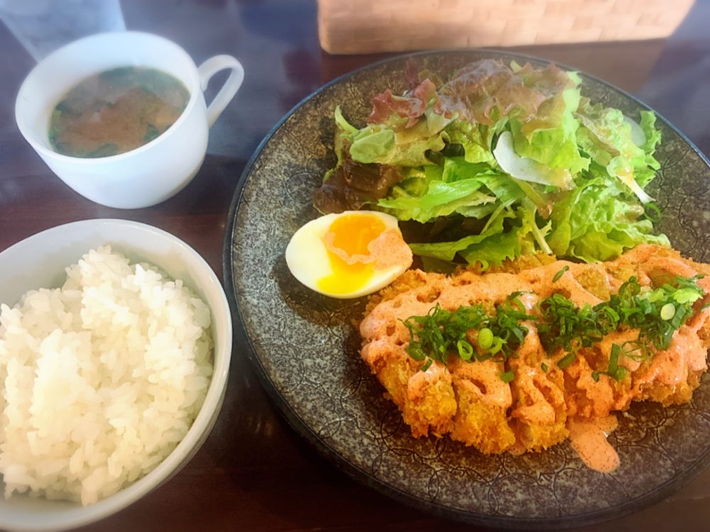 チキンカツのめんたいソースです、チキンカツ大好き!
