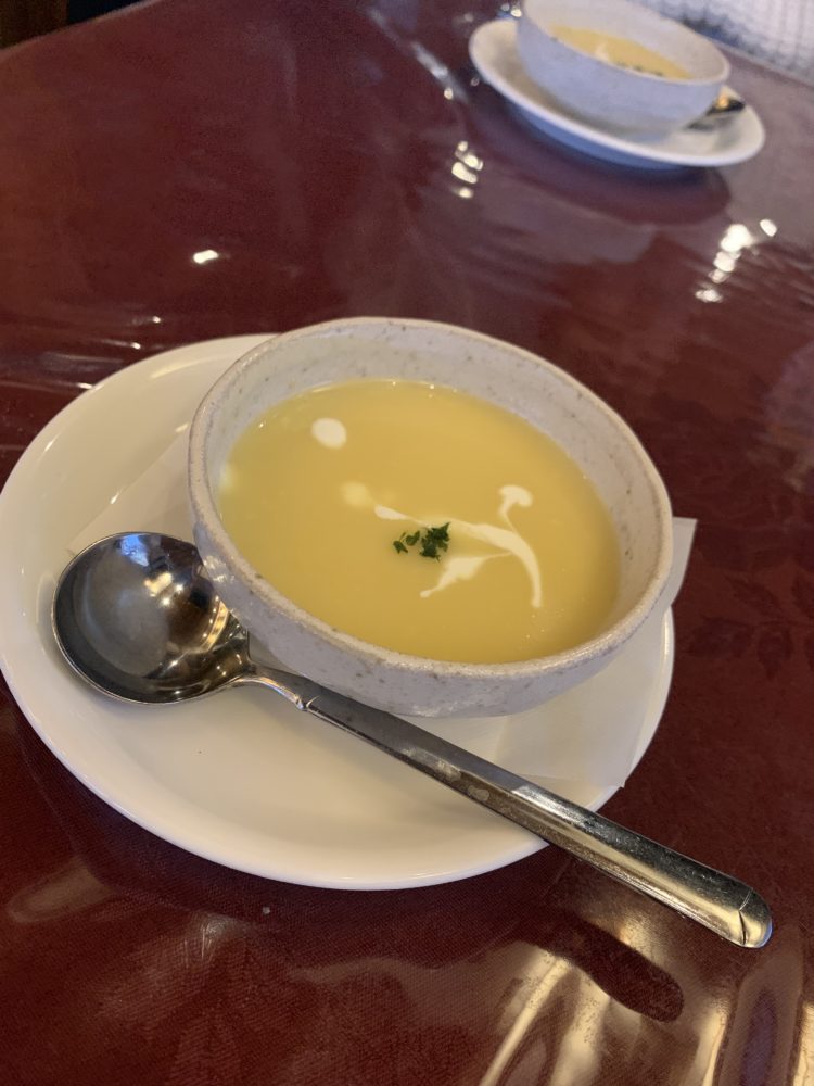 まずは暖かいスープです、既製品を使わず丁寧に作られた味に好感がもてます。