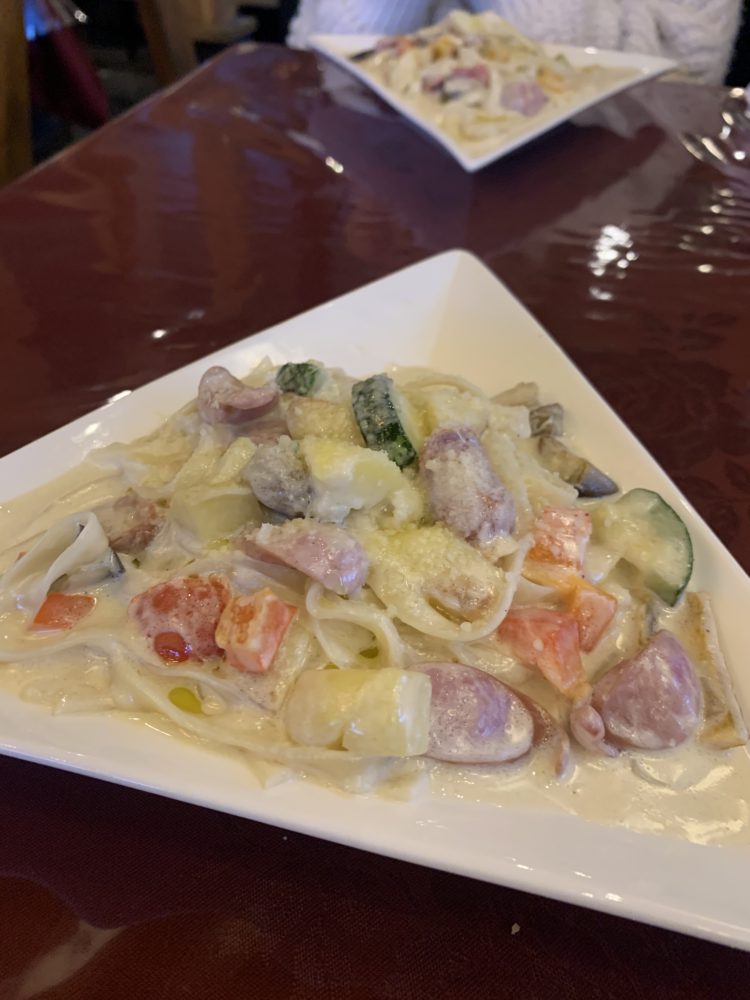 当日のパスタかピザをチョイスできます、パスタはバーニャカウダーのパスタです、これは正直後半重たかったです。お皿がおしゃれではなかったのが残念です・・・
