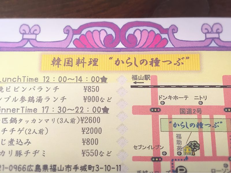 福山市の韓国料理(からしの種つぶ)in 福山市手城町