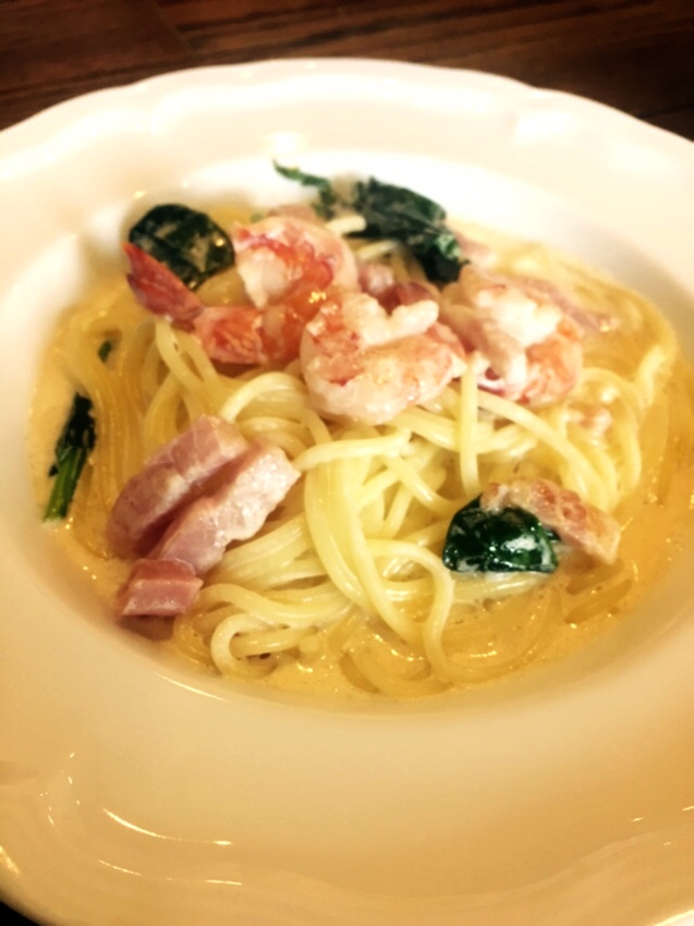 僕はお店の人のお勧めクリームパスタにしました、自家製麺らしく太目のひじょうにモッチモチで美味しいかったです、クリームもあっさり目でしつこくありません。