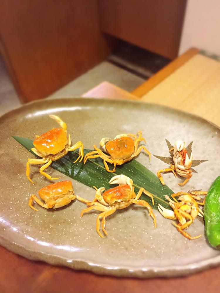 珍しい沢蟹のから揚げです、大きいのを食べると口の中がチクチクです。