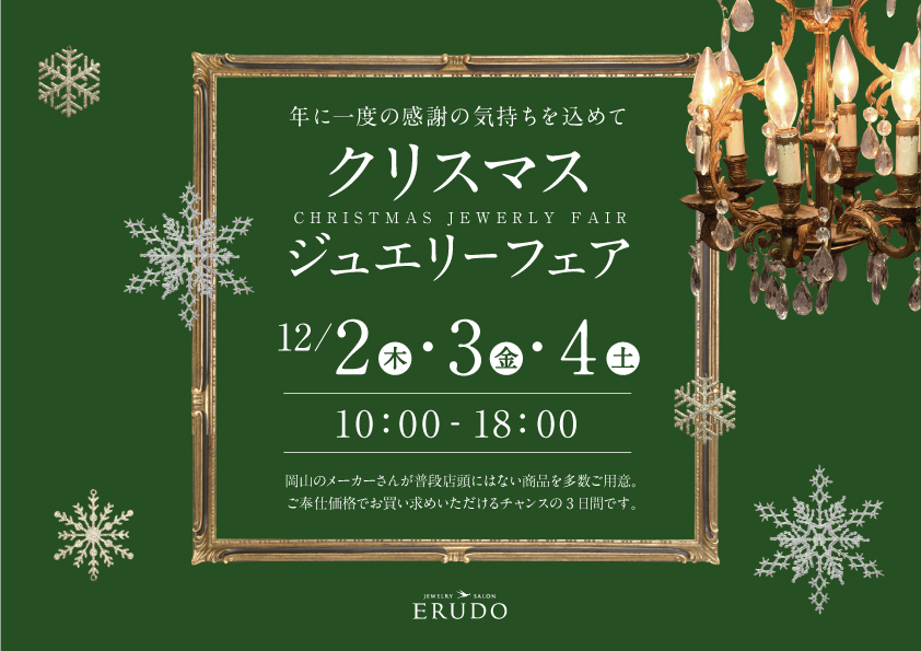 岡山のメーカーさんが普段店頭にはない商品を多数ご用意♪期間中しか手に入らない貴重なジュエリーをお得に購入いただける機会ですのでぜひご来店ください。