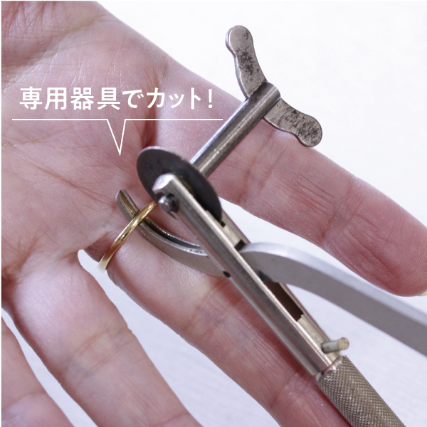 リングの切断は消防署などでもできるのですが、 切断後のリングの扱いが専門ではないので、 リングの修理が困難な状態になってしまう事もあります。 エルドーでは修復の事も考えリングを切断して外し、 切ったリングを元に戻すところまで対応することが可能です。