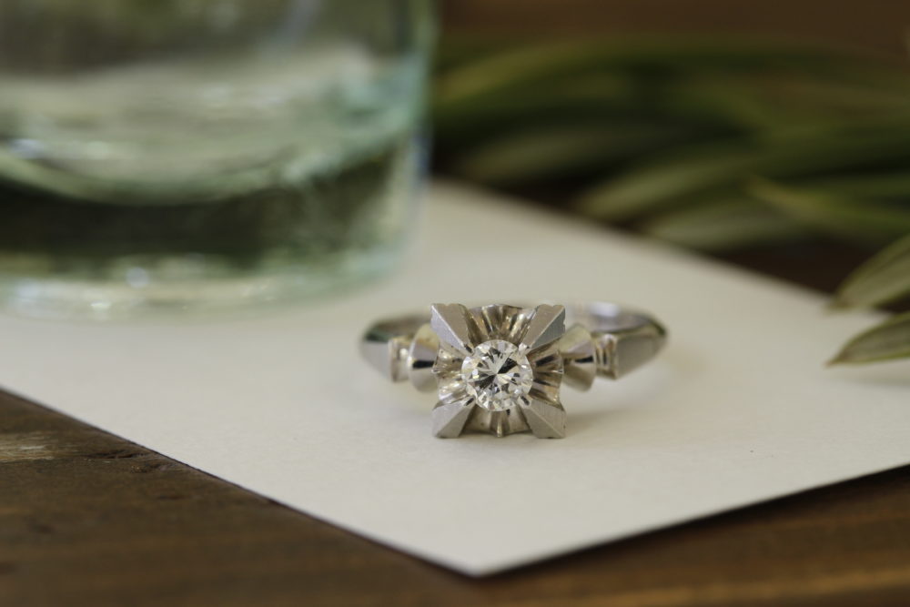 ダイヤの入っている部分をピンクゴールド、周りをプラチナでお作りいただきました。