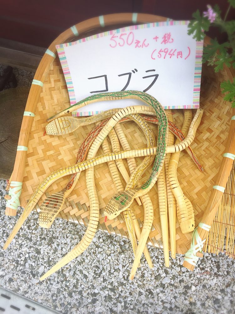 道の途中にかわいいお店が沢山あります。このカエルは偽者ですよ。