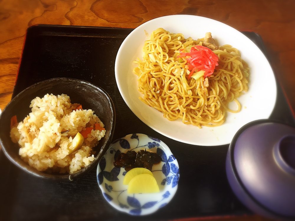 蒜山や生そばとおこわのSETを食べてみましたがふつーでした、味噌汁が冷たいのは蒜山スタイルなのかな? 飲み難いは!