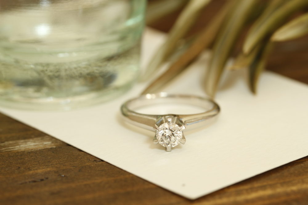 お持ちのダイヤを使い、好みの枠をエルドーオリジナルの中から選んでいただきエンゲージリングにさせていただきました。