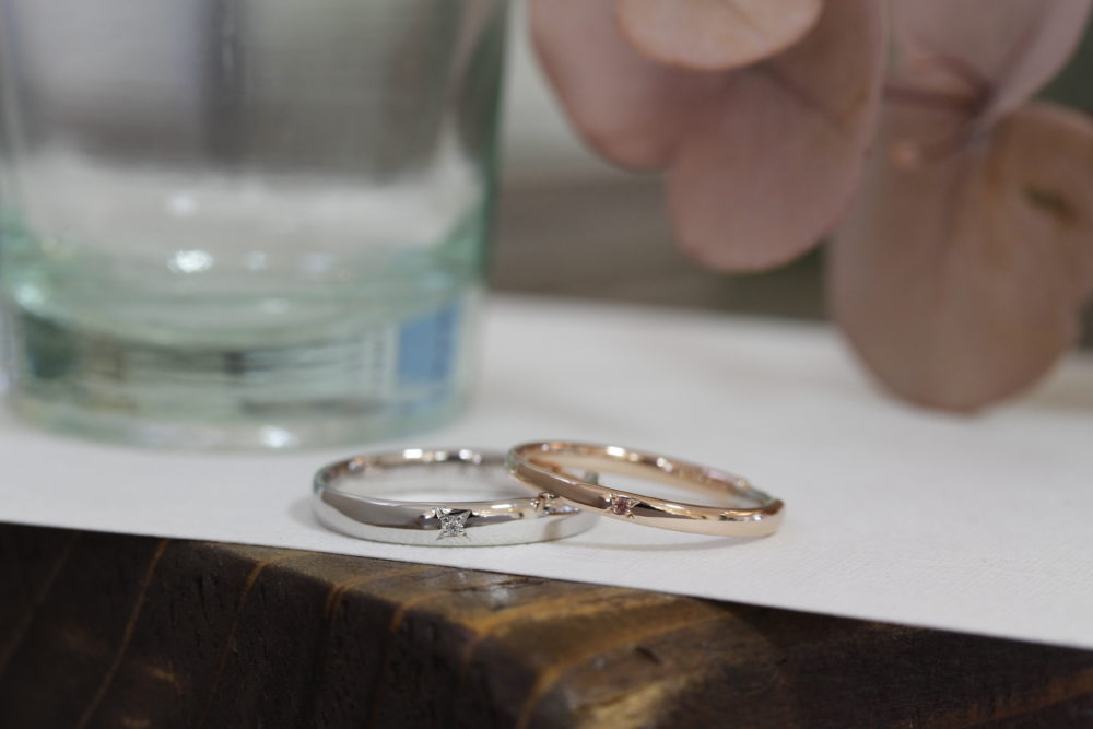 奥様と旦那様でピンクゴールドとプラチナの逆のコンビになっています。