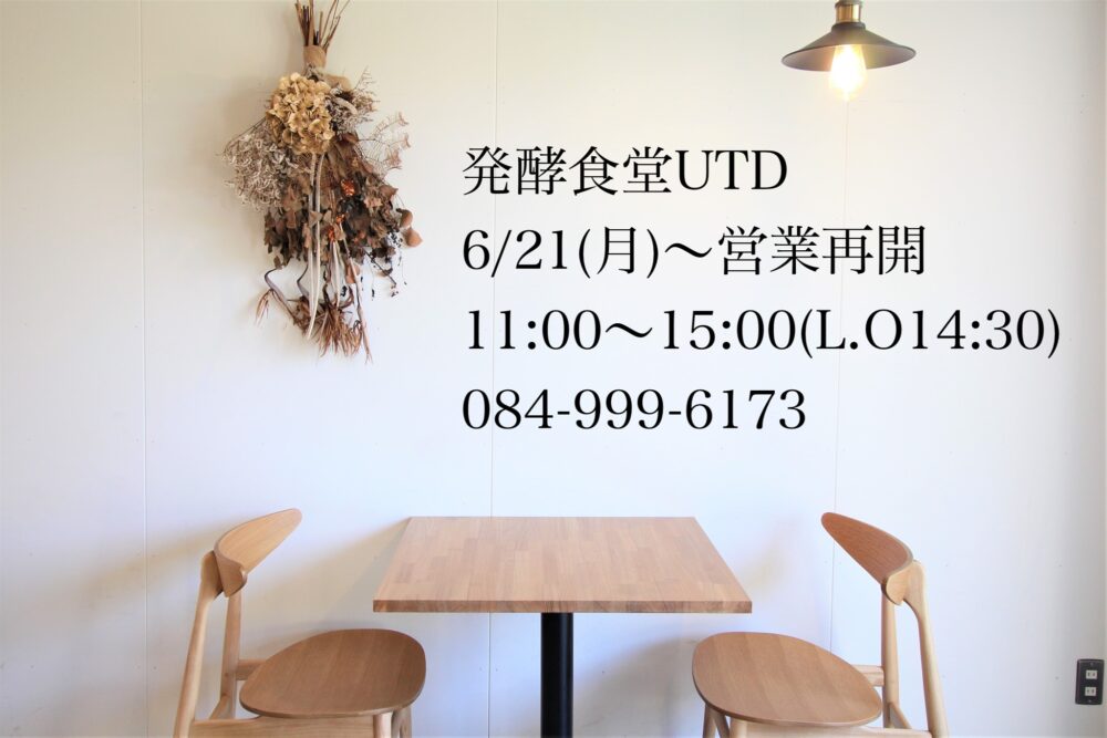 HOME > お知らせ > 発酵食堂UTDの営業再開のお知らせ 発酵食堂UTDの営業再開のお知らせ 2021.06.17. 発酵食堂UTDの営業再開のお知らせ 6月21日より営業再開致します。 皆様にお会いできるのを楽しみにお待ちしております。 スタッフYUKA < 前を読む 次を読む > < 一覧に戻る お知らせ リフォーム 修理 買取 エルミシュラン オーナーブログ