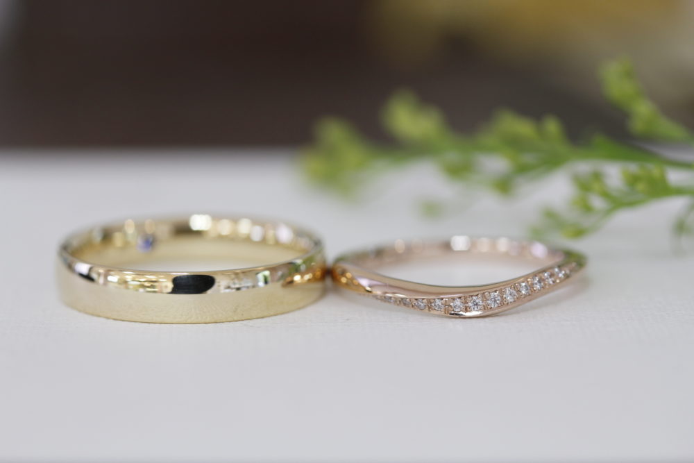 旦那様のリングはしっかり太目のK18YGのお素材になっています。