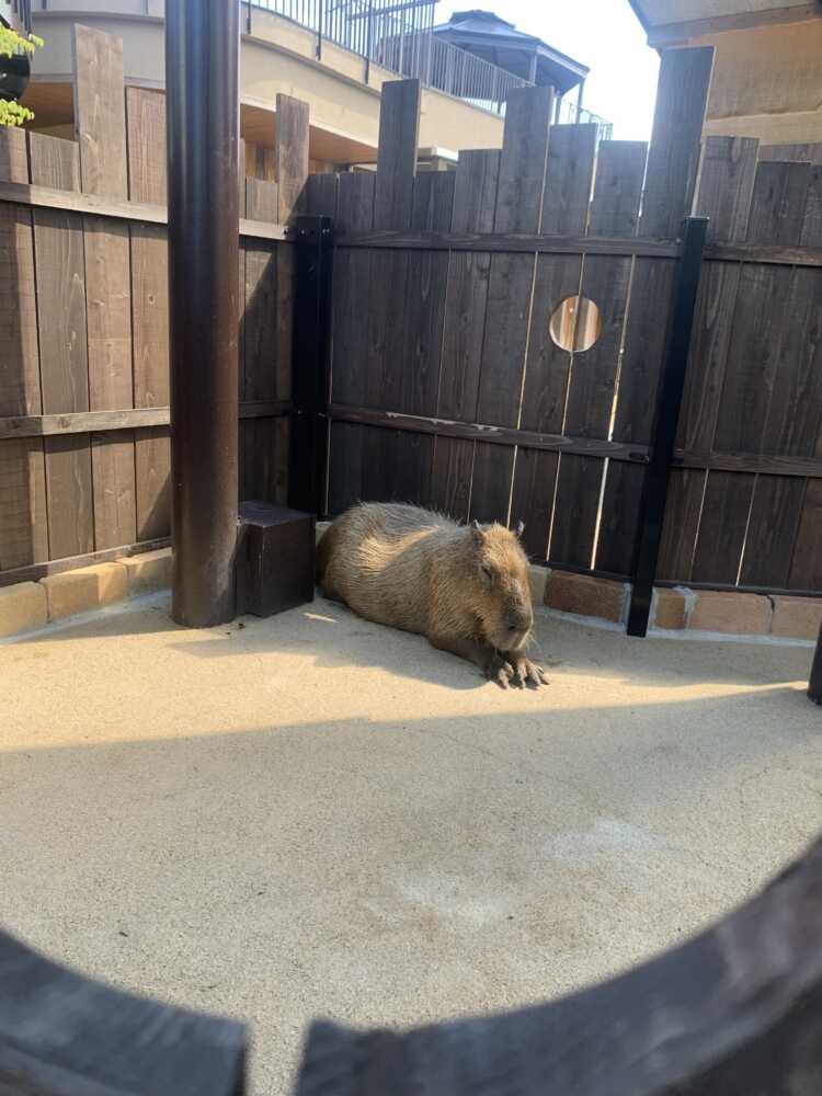 食事のあとはカピバラ君を眺めて