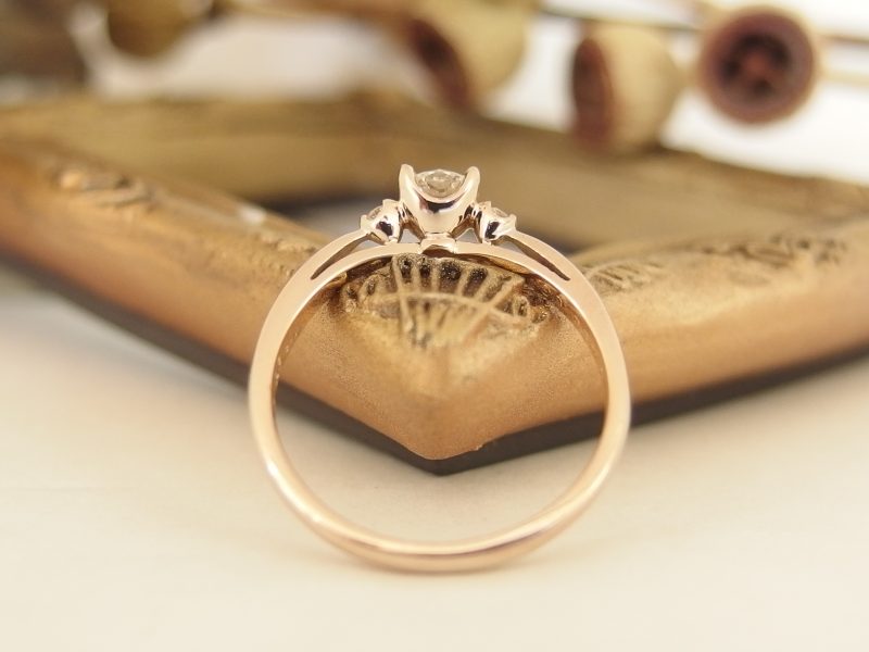 エンゲージリング(ダイヤ込み)は横からのデザインにもこだわり、シンプルだけどかわいらしさをプラスに!