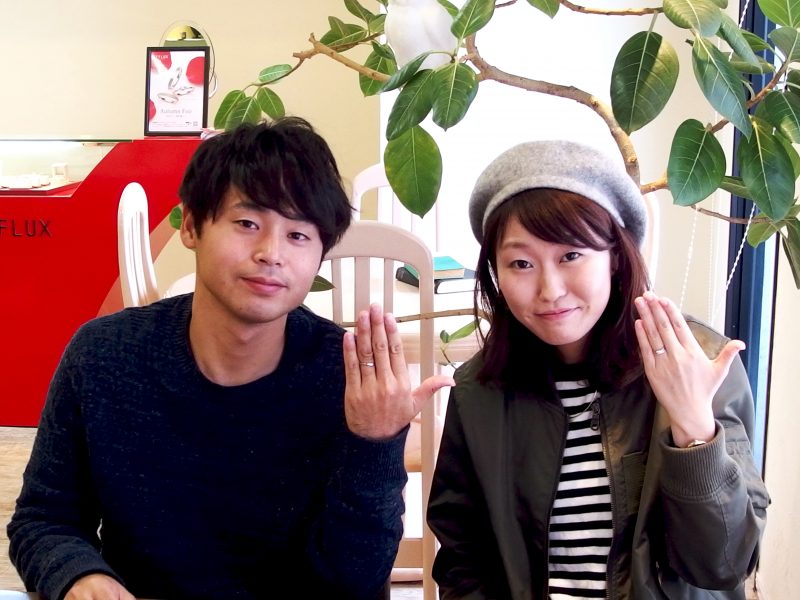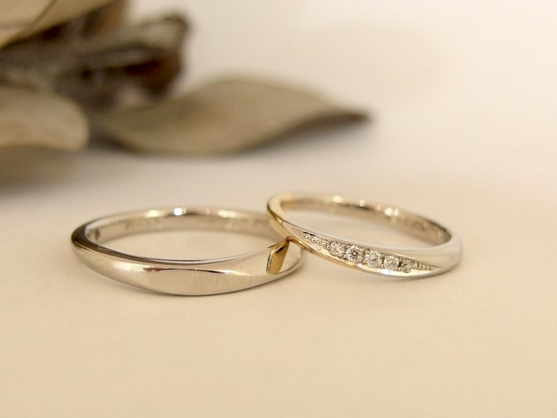 マリッジリングは、お揃いのデザインですが、お素材をかえて制作。