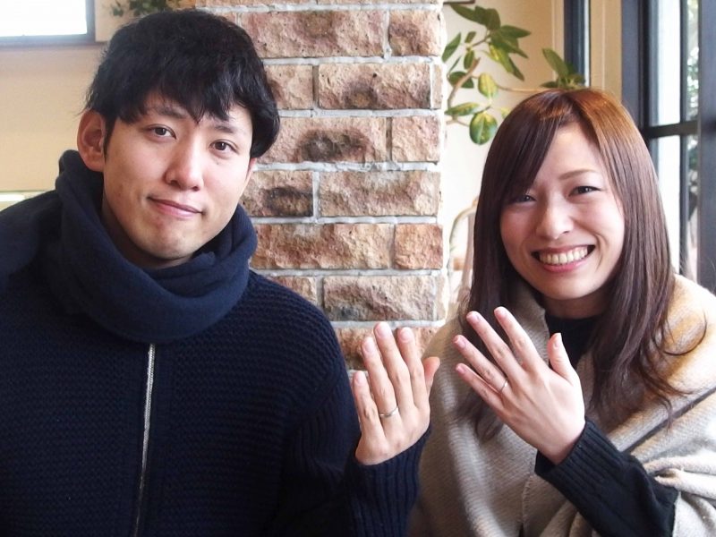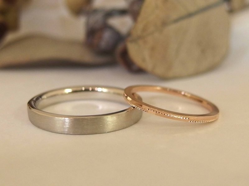 奥様はシンプルな細目のリングをお探しで、色味もこだわって探されてました。