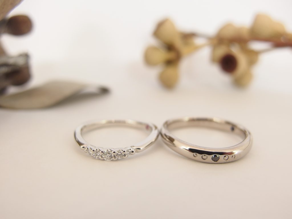 彼のリングにはブラックダイヤを中央に1石アレンジしました。