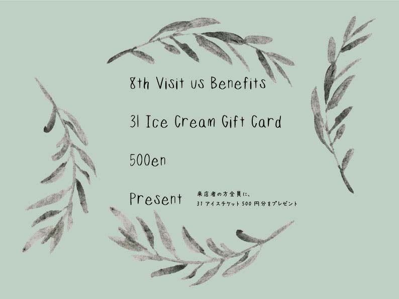 2017年8月の来店者特典は、夏には好評の31アイスチケット500円分プ...
