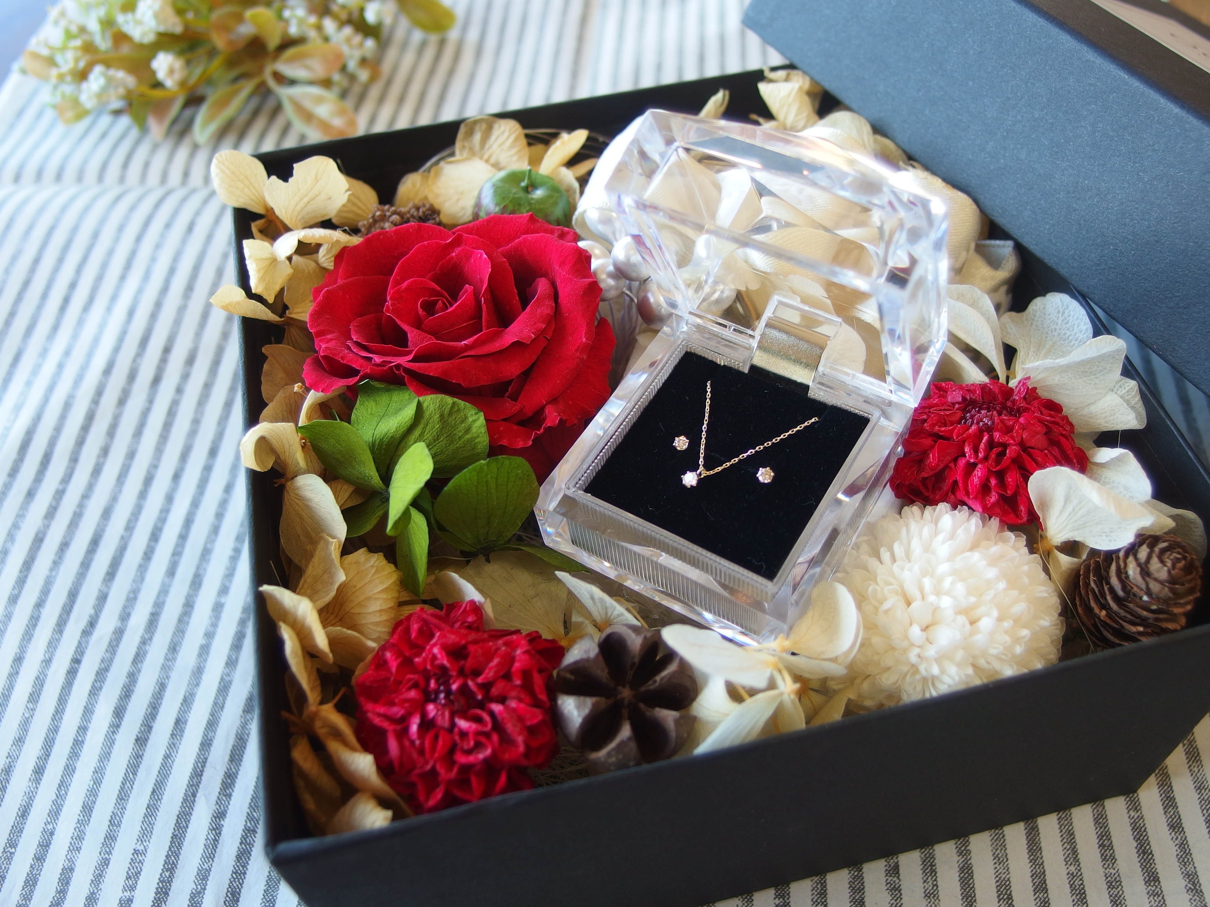 ☆プリザーブドフラワージュエリーボックス☆結婚指輪なら福山市エルドーへ