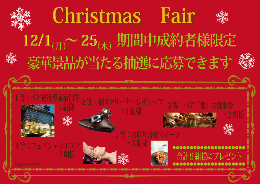 【残り8日】★恒例クリスマスフェアー開催★結婚指輪なら福山市エルドーへ