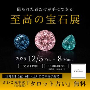 - ご安心ください。ERUDOスタッフ全員そういう接客が大嫌いなので、そんな思いはさせません。ジュエリー選びを楽しんでください!人気の商品やこだわりの商品などを探す方、素材や納期、予算のご相談などあればお声がけください。