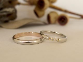 メンズは内側がPG、レディースは真ん中がK18。素材は違えどもどちらもコンビ仕上げ。 コンビ仕上げで共通点をだすのもいいですね。 メンズ・レディースともにルノアのデザイン。こちらの...