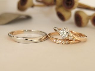 とってもやわらかな笑顔が印象的な田中様ご夫妻のご紹介です。 お二人が選ばれたリングはこちらです。 一部がK18PG、ダイヤの入ってるところがプラチナ900のコンビ仕上げのリ...